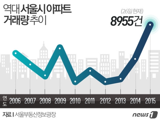 (서울=뉴스1) 최동순 기자 = 전통적인 부동산 비수기 8월에도 주택 거래량과 매매가격의 상승세는 지속됐다. 8월 한달간 서울지역 아파트 거래량은 역대 최대치를 기록했고 매매가격 상승률도 12년만에 최고치를 기록했다. 전문가들은 지속적인 전세난과 저금리 기조로 매매전환 수요가 이어지면서 '부동산 비수기'가 사라지고 있다고 진단했다. 특히 정부의 대출규제 방안으로 인한 선매수 수요도 벌써부터 영향을 끼치고 있다고 분석했다. 28일 서울부동산정보광장에 따르면 26일 현재 서울지역 아파트 거래량은 8955건을 기록해 조사를 시작한 2006년이후 가장 많은 것으로 조사됐다. 영업일 기준 아직 3일의 집계기간이 남아있는 만큼 이달 거래량은 8월 거래량 최초로 1만건을 넘어설 것으로 예상된다. 지치구별로는 노원구가 870건으로 가장 많았고 Δ강서구 627 건 Δ강남구 564 건 Δ송파구 561 건Δ성북구 512 건 Δ양천구 470 건 Δ구로구... admin2015-08-28 120887